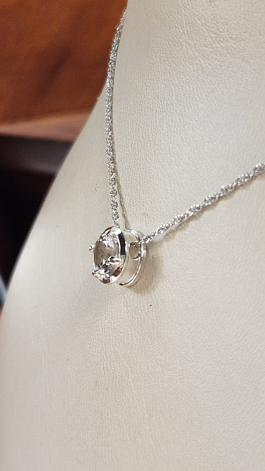0.45ct clear star brilliant cut Texas topaz is set in a small sterling silver pendant and chain