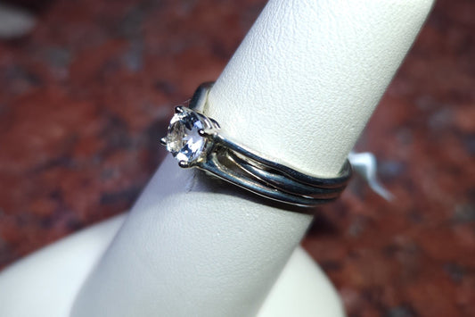 0.50ct clear star brilliant cut Texas topaz is set in a sterling silver ring.