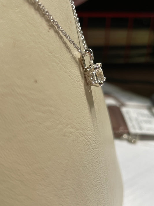 0.45ct clear star brilliant cut Texas topaz is set in a small sterling silver pendant and chain