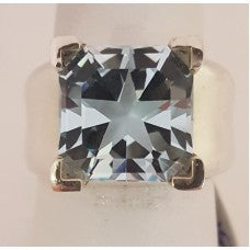 0.45ct Mason County clear star brilliant cut topaz mounted in a sterling silver ring with a 14kt white gold head.